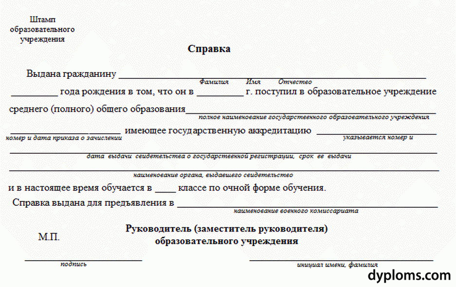 Справка в военкомат